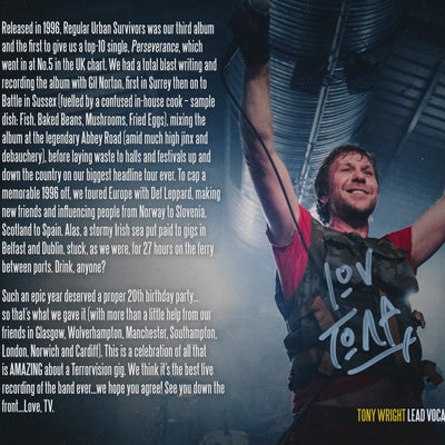 2016年「Regular Urban Survivors」20周年記念ツアーから、マンチェスター公演を収録したライヴ盤の3面見開きデジパックにメンバーそれぞれの直筆サインが入ったコレクターズエディション!